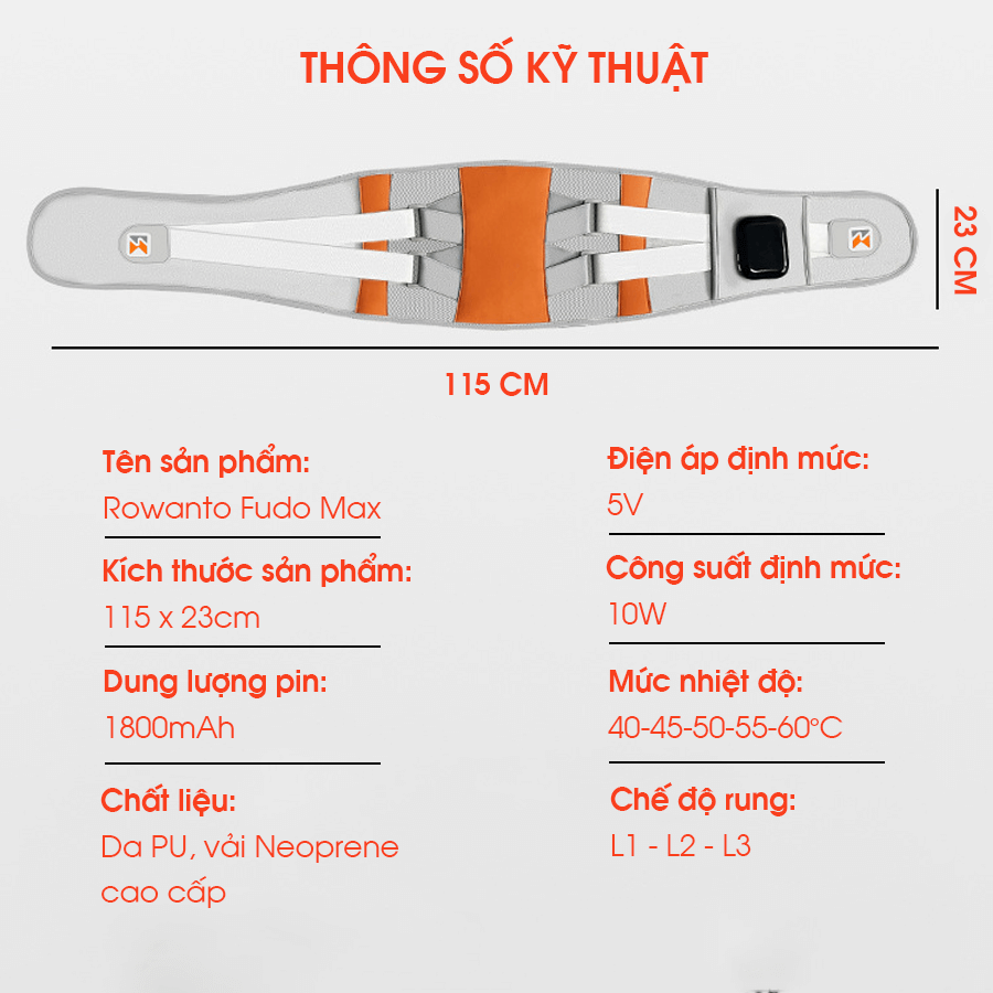 Tên sản phẩm: Đai cố định cột sống Rowanto Fudo Max