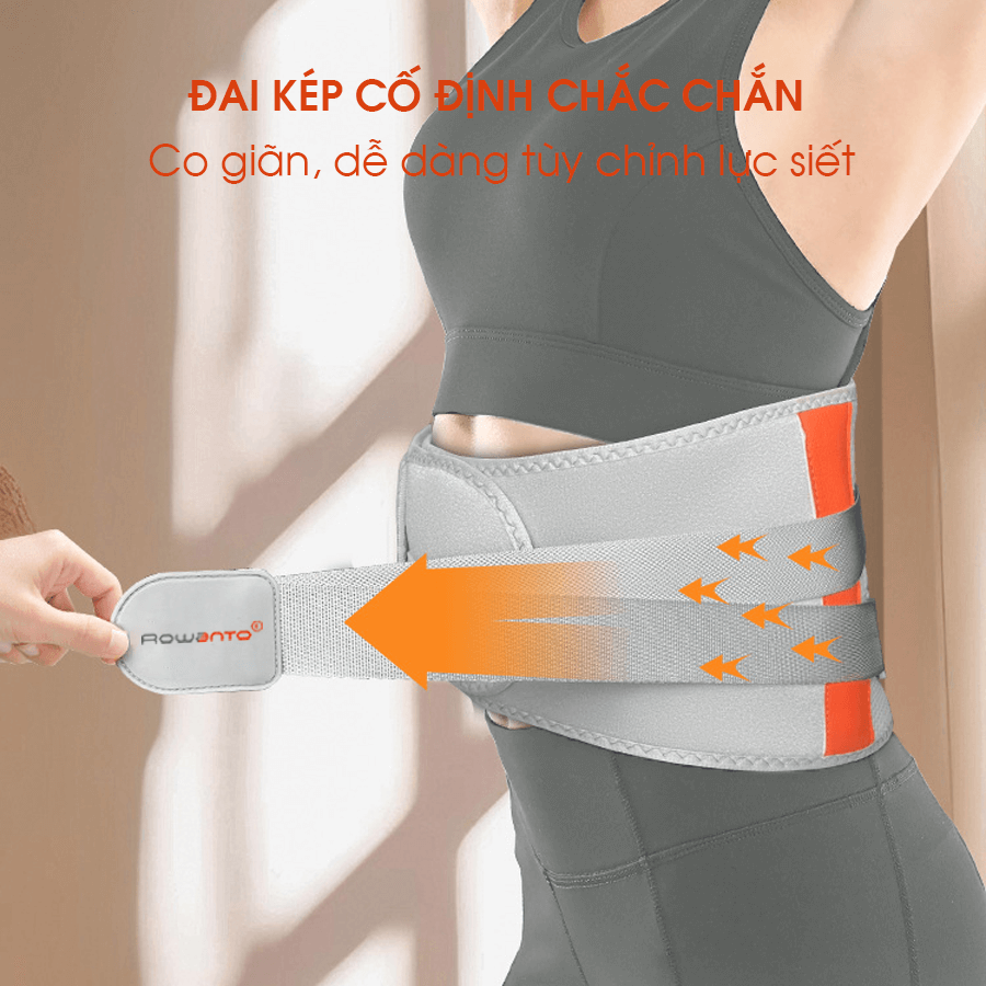 Đai kép cố định chắc chắn: Hệ thống đai kép giúp tăng lực giữ và độ ổn định cho vùng thắt lưng, hạn chế xô lệch khi vận động hoặc thay đổi tư thế.