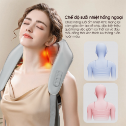 Tính năng sưởi nhiệt hồng ngoại giúp làm ấm vùng cổ vai gáy, hỗ trợ giãn cơ, thúc đẩy lưu thông máu và tăng hiệu quả massage. Đặc biệt phù hợp với người hay bị lạnh cổ, đau mỏi khi thời tiết thay đổi.