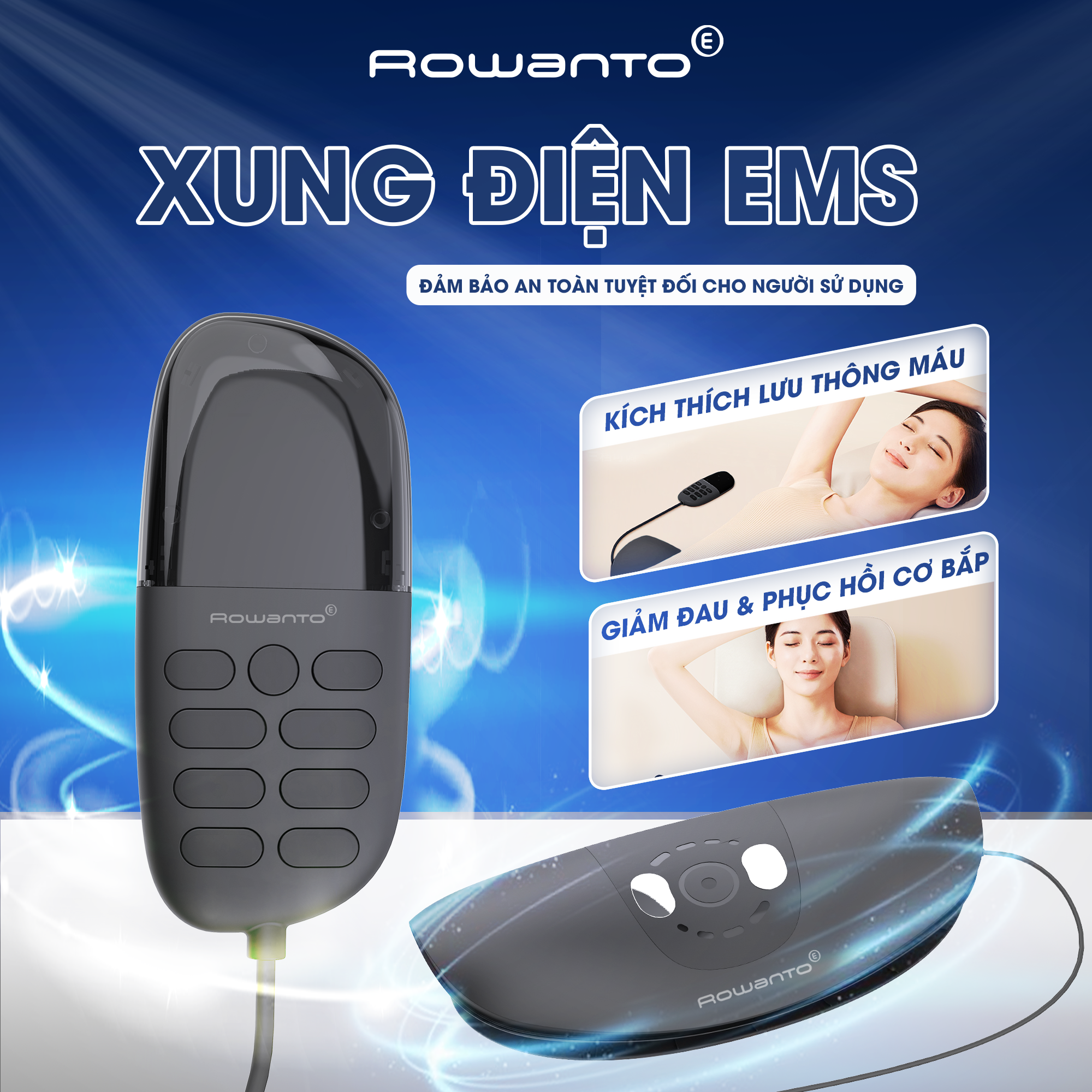 Rowanto DT09 Plus ứng dụng công nghệ xung điện EMS với cường độ được kiểm soát chặt chẽ, đảm bảo an toàn trong quá trình sử dụng. Các xung điện tác động nhẹ nhàng lên cơ lưng, giúp kích thích cơ bắp hoạt động, hỗ trợ thư giãn mà không gây đau rát hay khó chịu.