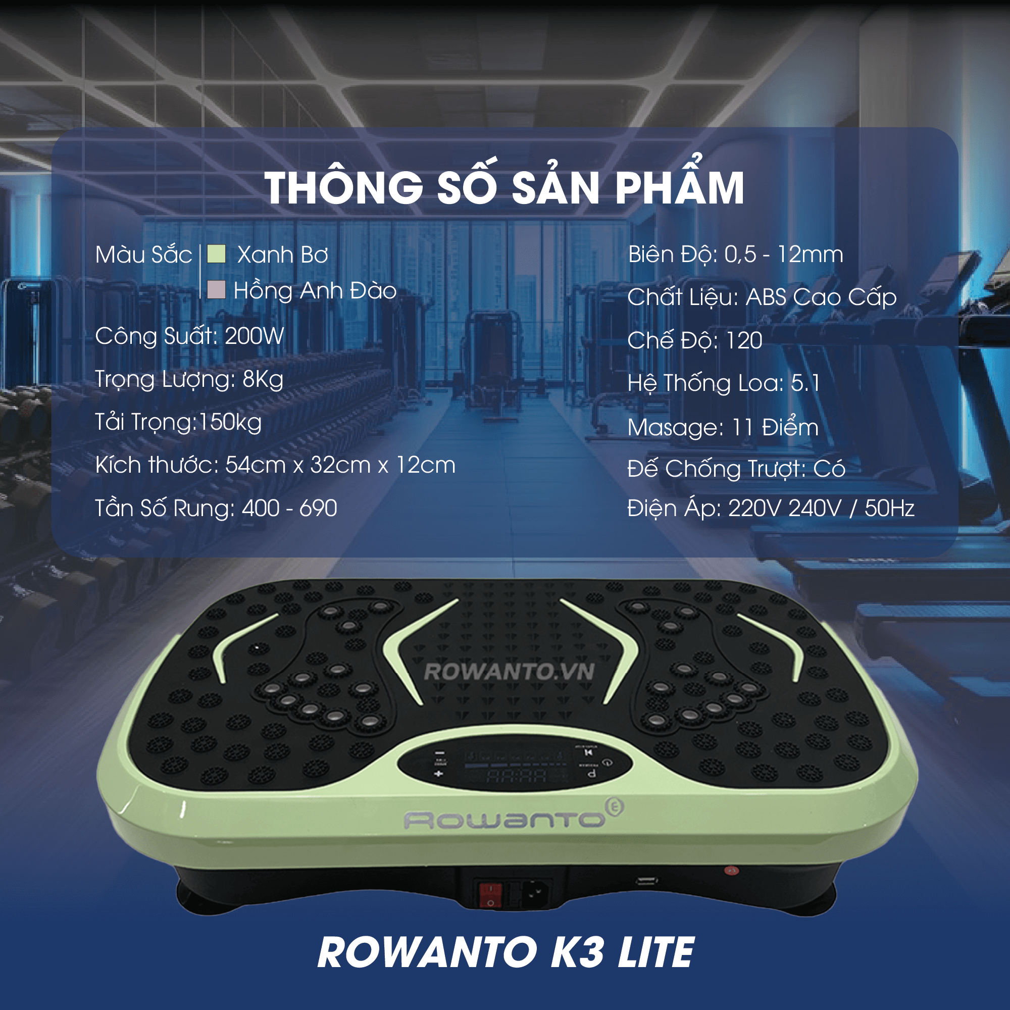 Tên sản phẩm: Máy rung thể hình Rowanto K3 Lite