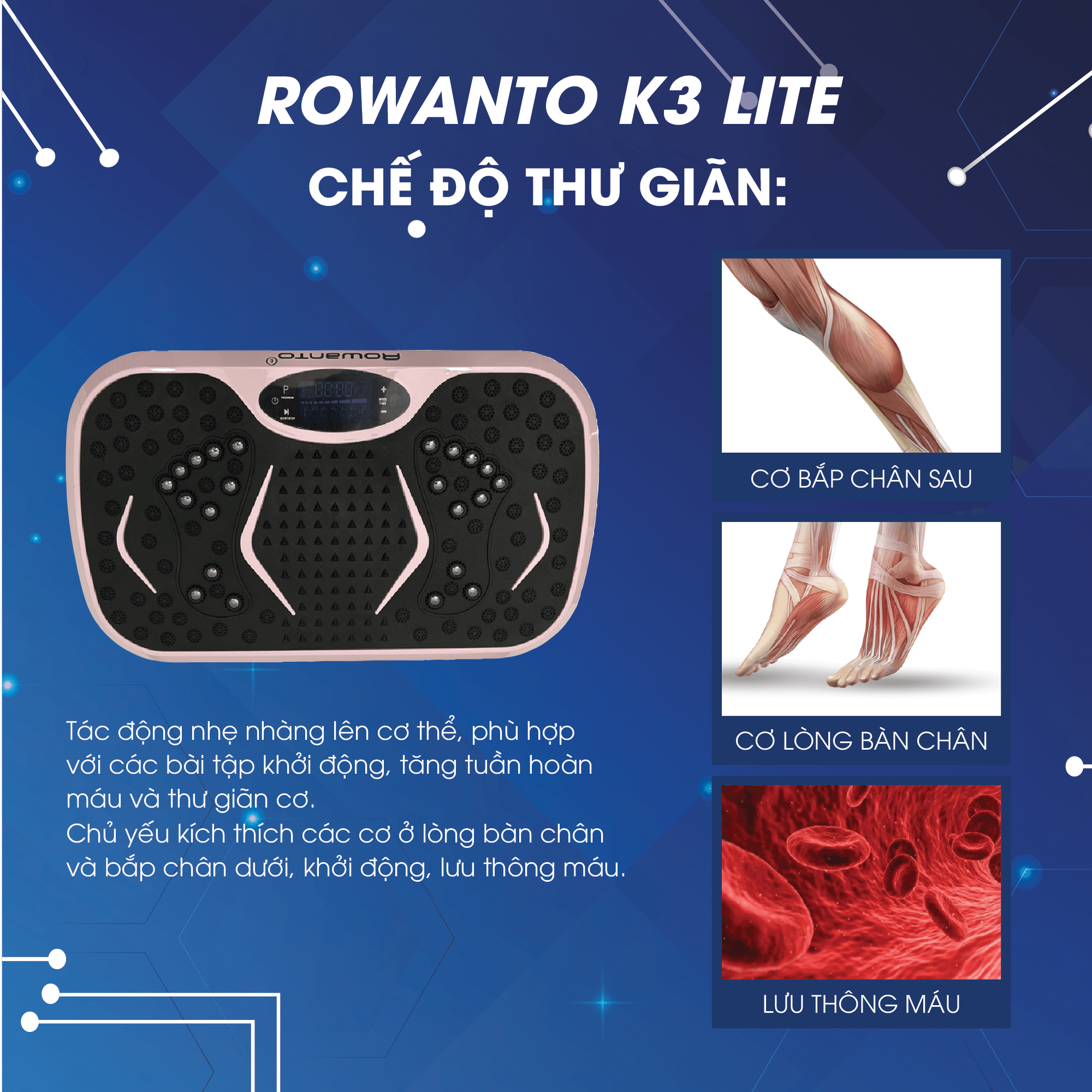 Máy rung thể hình Rowanto K3 Lite là giải pháp phù hợp cho những ai muốn duy trì vận động, hỗ trợ săn chắc cơ thể và thư giãn mỗi ngày mà không cần đến phòng tập. Thiết kế hiện đại, nhiều chế độ tập luyện và công nghệ tiên tiến giúp bạn chủ động chăm sóc vóc dáng ngay tại nhà.