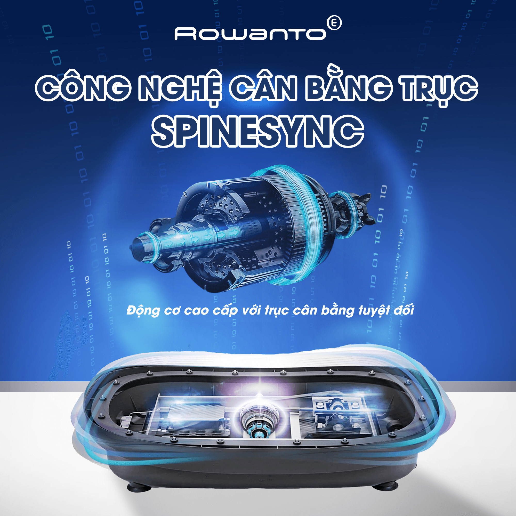 SpineSync™ là công nghệ cân bằng trục rung tiên tiến giúp máy vận hành ổn định trong suốt quá trình sử dụng. Hệ thống này tự động điều chỉnh và phân bổ lực rung đồng đều trên toàn bộ bề mặt bàn rung, hạn chế tối đa tình trạng rung lệch, rung dồn lực về một phía. Nhờ đó, cột sống và các khớp lớn được giữ ở tư thế cân bằng tự nhiên, giảm áp lực không cần thiết lên thắt lưng, đầu gối và cổ chân, đồng thời tăng mức độ an toàn và thoải mái khi tập luyện lâu dài.