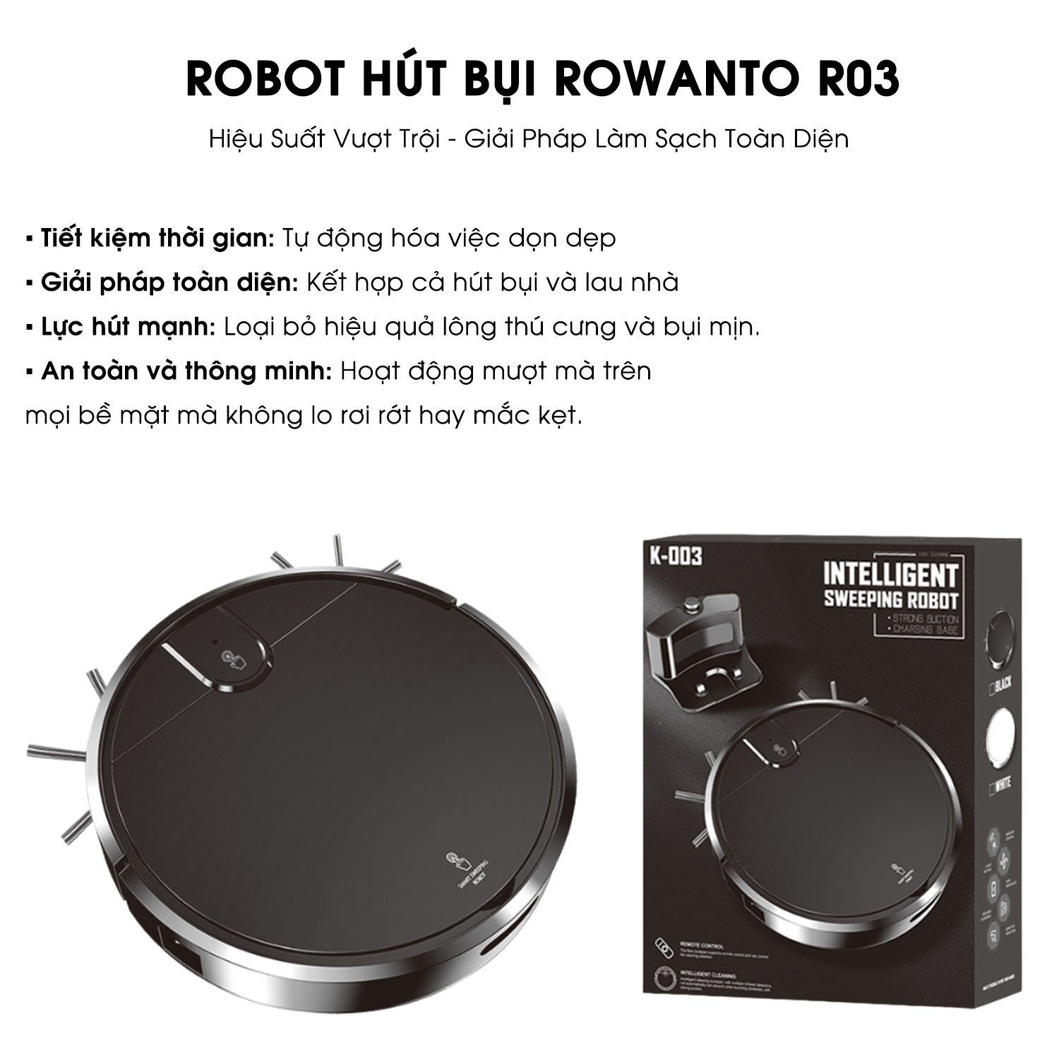 Tên sản phẩm: Robot hút bụi Rowanto R03