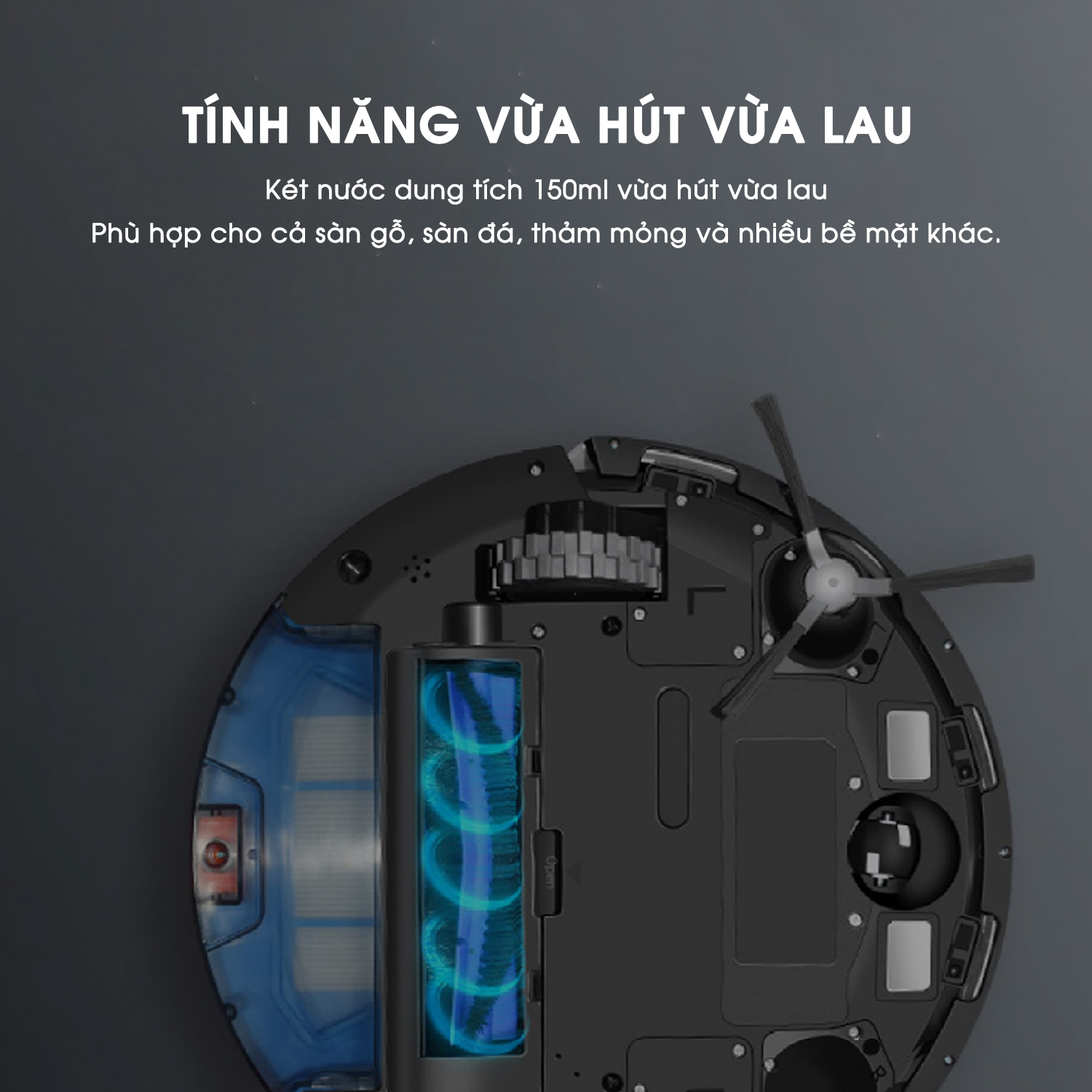 Công dụng: Hút bụi, lau sàn, làm sạch sàn nhà tự động