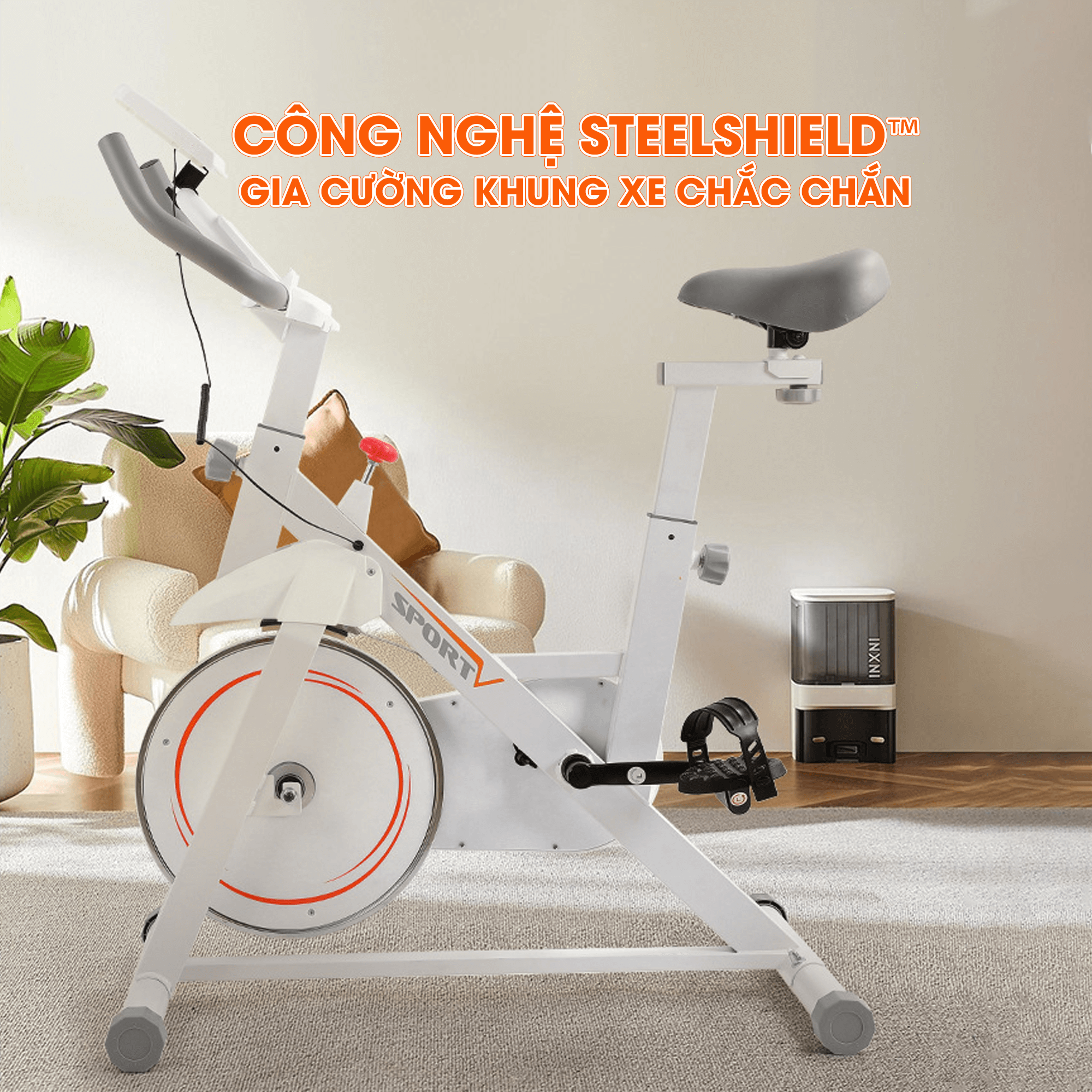 Khung sườn được gia công chắc chắn, có khả năng chịu tải tốt, đảm bảo độ ổn định trong suốt quá trình tập luyện, kể cả khi đạp với cường độ cao.